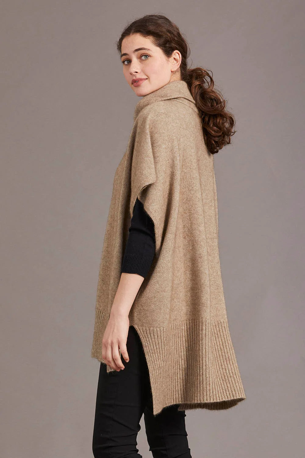 This comfortable and flattering poncho is available in three versatile neutral colour options. A step level hem and a small cowl neck set this poncho apart from the rest, and keep you warm in style. Can be worn loose or cinched with a belt of your choosing.